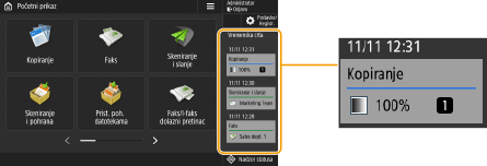Ako je mogućnost <Upravljanje pristupnim brojevima adresara> postavljena na <Uključeno>, zapisnik poslanih poslova funkcija ("Faks" i "Skeniranje i slanje") neće biti prikazan na vremenskoj crti za neprovjerene korisnike i korisnike goste.