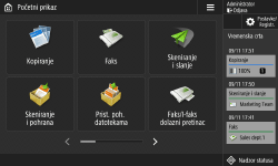 (Početni zaslon). Na zaslonu <Početni prikaz> prikazuje se popis funkcijskih gumba te služi za to da se putem njega pristupa različitim funkcijama. Stavke prikazane na zaslonu <Početni prikaz>