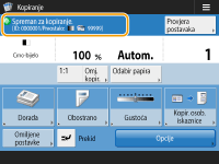 Prikazuje status postavke poput omjera kopiranja, veličine papira i broja kopija. Svakako potvrdite postavke kako biste pravilno kopirali. Da biste promijenili postavke, pritisnite gumb pod odlomkom zaslona.