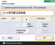 Za međunarodno slanje faksovaUnesite međunarodni pristupni broj, pozivni broj države i broj faksa. Ako se možete uspješno povezati s odredištima u inozemstvu, pritisnite <Pauza> da biste umetnuli pauzu između broja i sljedećeg broja.