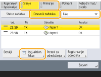 Ne možete konfigurirati postavke za Izvješće o aktivnostima faksa ako je opcija <Prikaz dnevnika zadataka> u izborniku <Postavke upravljanja> postavljena na <Isključeno>. Osim toga, ako promijenite promijeniti vrijednost opcije <Prikaz dnevnika zadataka> u izborniku <Postavke upravljanja> iz <Isključeno> u <Uključeno>, <Ispiši/šalji za svaki odabrani br. prijenosa> i <Ispiši/pošalji u podešeno vrijeme> iz Izvješća o aktivnostima faksa automatski će se promijeniti u <Isključeno>. <Prikaz dnevnika zadataka>