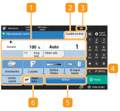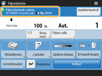 Kuvab seadeoleku, nagu paljundusmastaap, paberi suurus ja koopiate arv. Õigesti kopeerimiseks kinnitage kindlasti seaded. Seadete muutmiseks vajutage näidikujaotise all olevat nuppu.