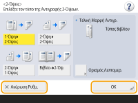 βρίσκεται στην κάτω δεξιά πλευρά, για να εμφανιστεί η οθόνη ρύθμισης. Όταν πραγματοποιηθεί η ρύθμιση, η κατάσταση ρυθμίσεων εμφανίζεται στο επάνω τμήμα ενός πλήκτρου και το χρώμα του κάτω τμήματος αλλάζει.