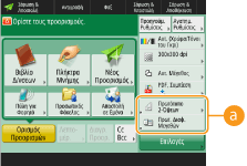 Αλλαγή της προεπιλεγμένης ρύθμισης της οθόνης βασικών λειτουργιών α.Αφού αλλάξετε τις ρυθμίσεις για κάθε λειτουργία, μπορείτε να καταχωρίσετε τις τρέχουσες ρυθμίσεις ως προεπιλογή στην οθόνη βασικών λειτουργιών πατώντας