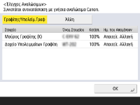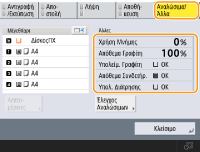 (ΈλεγχοςΚατάστ), εμφανίζεται η οθόνη Έλεγχος Κατάστασης, η οποία σας επιτρέπει να ελέγξετε το επίπεδο του γραφίτη ή άλλες ενδείξεις κατάστασης.