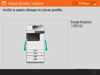 Όταν η μονάδα τυμπάνου πλησιάζει στο τέλος της διάρκειας ζωής της, θα εμφανιστεί στο κάτω μέρος της οθόνης ένα μήνυμα που σας ενημερώνει για την αντικατάστασή της. Πατήστε το εικονίδιο στο δεξιό κάτω μέρος της οθόνης και ακολουθήστε τις οδηγίες που εμφανίζονται στην οθόνη για να αντικαταστήστε τη μονάδα τυμπάνου.