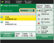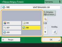Έλεγχος του συνολικού αριθμού των καθορισμένων προορισμώνΟ συνολικός αριθμός προορισμών που καθορίσατε εμφανίζεται στην επάνω δεξιά περιοχή της οθόνης. Αυτό σας δίνει τη δυνατότητα να ελέγξετε ότι ο αριθμός των προορισμών είναι σωστός πριν από την αποστολή.
