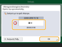 Πληκτρολογήστε την ώρα αποστολής και πατήστε <OK>.