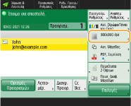 Για να επιλέξετε έναν προορισμό από την οθόνη <Πλήκτρα Μνήμης> μετά τη σάρωση, ρυθμίστε το <Πλήκτρα Μνήμης> για <Προεπιλεγμένη Οθόνη>. Η εργασία που απαιτείται για την αποστολή σαρωμένων εγγράφων στον ίδιο προορισμό μπορεί να μειωθεί. <Προεπιλεγμένη Οθόνη>