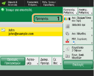 Έλεγχος του συνολικού αριθμού των καθορισμένων προορισμώνΟ συνολικός αριθμός προορισμών που καθορίσατε εμφανίζεται στην επάνω δεξιά περιοχή της οθόνης. Αυτό σας δίνει τη δυνατότητα να ελέγξετε ότι ο αριθμός των προορισμών είναι σωστός πριν από την αποστολή.