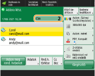 A megadott rendeltetési helyek teljes számának ellenőrzéseA megadott rendeltetési helyek teljes száma a képernyő jobb felső részén látható. Ezzel küldés előtt ellenőrizheti a rendeltetési helyek számát.