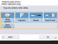 un pēc tam nospiežot <Mainīt noklusējuma iestatījumus>. Ja pirms šā iestatījuma veikšanas iekārtā piesakāties, izmantojot personu autentifikācijas pārvaldību (Pieteikšanās iekārtā), tas tiek reģistrēts kā jūsu personalizētais noklusējuma iestatījums (Personalizējamu vienumu saraksts). |