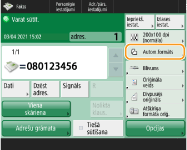 Faksa/i-faksa sūtīšanas darbi: <Kvalitātes prioritāte> (<Ātruma/attēla kvalit. priorit. melnbaltai skenēšanai>)Ja ir iestatītas vairākas tālruņa līnijasVar izvēlēties tālruņa līniju, kas jāizmanto faksu sūtīšanai, nospiežot <Opcijas>