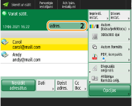 Norādīto adresātu kopējā skaita pārbaudeKopējais norādīto adresātu skaits tiek parādīts ekrāna augšējā labajā stūrī. Tas ļauj pirms nosūtīšanas pārliecināties, vai adresātu skaits ir pareizs.