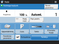 , rodomą ekrane <Pagrindinis> ir pagrindinių funkcijų ekrane, kad galėtumėte tinkinti ekraną, pavyzdžiui, pertvarkyti mygtukus ar sukurti sparčiuosius klavišus. Jutiklinio ekrano pritaikymas