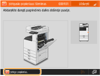 (Būkl. kontrolė), rodomas ekranas <Būkl. kontrolė>. Šiame ekrane galite patikrinti spausdinimo ir perdavimo būseną, dažomųjų miltelių likutį ir atminties lygį.