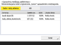Likusį eksploatacinių medžiagų kiekį galite patikrinti naudodami nuotolinę vartotojo sąsają. Aparato būklės patikrinimas