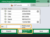 <Naujų adrsat. registravim.>, <Det. inform./redagavimas> ir <Naikinti> dalyje <Įreg./redagav.>, Adresų knyga (vietinė) ekranas gali būti naudojama naujiems adresatams registruoti, informacijai tikrinti ir adresatams redaguoti / šalinti.