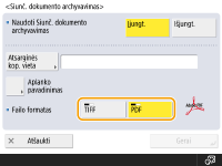 Tiesioginio siuntimo režimo naudoti negalima, jei nustatėte parametro <Siunč. dokumento archyvavimas> reikšmę <Taip>.