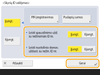 Pasirinkite <Išjungt.> funkcijoms, kurias norite valdyti, tada spustelėkite <Gerai>.