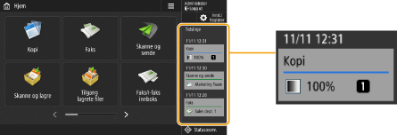 Hvis <Administrere adressebok tilgangsnummer> er innstilt til <På>, vises ikke sendejobbloggen ("Faks" og "Skanne og sende") for ikke-godkjente brukere og gjestebrukere i tidslinjen.
