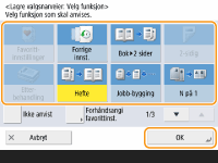 Registrere i <Favorittinnst.>I <Favorittinnst.> kan du registrere ofte brukte prosedyrer for kopiering samt ofte spesifiserte mottakere og innstillinger for skanning. Hvis du vl ha mer informasjon, kan du se Registrere en kombinasjon av ofte brukte funksjoner.