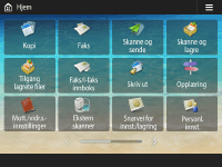 Du kan endre innstillingsknappene som vises på skjermbildene Grunnleggende funksjoner (for kopiering, faks og skanning). Du kan også vise et annerledes Grunnleggende funksjoner-skjermbilde, tilpasset for hver påloggede bruker.