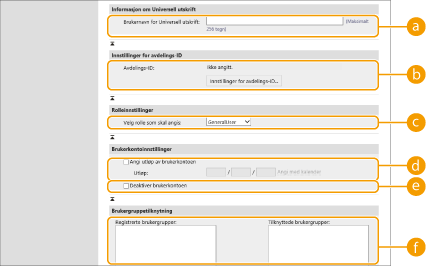 Hvis brukernavnet og passordet ikke oppfyller de ovennevnte betingelsene, tildeles en avdelings-ID automatisk fra 0000001, og 0 (ingen) angis for PIN-koden.