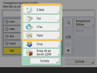 Spre deosebire de Agendă, nu se pot selecta mai multe destinaţii deodată pentru înregistrare.