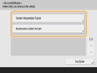 Apăsaţi <Accesibilitate> şi selectaţi setarea pe care doriţi să o configuraţi.
