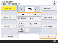 Puteţi să măriţi sau să micşoraţi prin specificarea raportului de copiere (%). Puteţi să specificaţi individual rapoartele pe verticală şi pe orizontală.