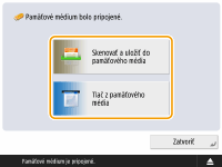 Ak je položka <Vybrať voľbu pri pripájaní pamäťového média> nastavená na možnosť <Zap.>, po vložení pamäťového média sa zobrazia skratky pre dostupné funkcie. <Vybrať voľbu pri pripájaní pamäťového média>