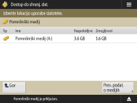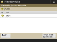 Zaslon za izbiro shrambe