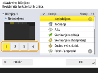Na zaslonu <Domov> lahko ustvarite bližnjični gumb za funkcije. S tem gumbom lahko dostopate do druge funkcije, ne da bi se bilo treba vrniti na zaslon <Domov>. Če želite ustvariti bližnjico, se prijavite s skrbniškimi pravicami.