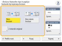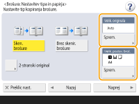 Pritisnite <Sprem.> v možnosti <Velik. originala> in izberite velikost izvirnika. Če izberete <Avto>, se velikost knjižice samodejno izbere glede na velikost izvirnika.