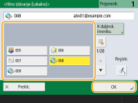 Registriranje pogosto uporabljenih nastavitevPogosto uporabljane prejemnike in nastavitve optičnega branja lahko združite v en gumb, ki ga lahko na napravi uporabljate pozneje. Če pri optičnem branju izvirnikov pritisnete registrirani gumb, lahko hitro vnesete nastavitve. Registriranje kombinacije pogosto uporabljenih funkcij