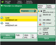 Preverjanje skupnega števila navedenih prejemnikovNa zgornjem desnem delu zaslona se prikaže število izbranih prejemnikov. Tako lahko pred pošiljanjem preverite, ali je število prejemnikov pravilno.