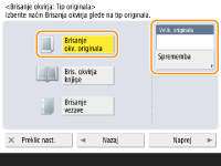 Pritisnite <Brisanje okvirja originala> in potrdite <Velik. originala>.