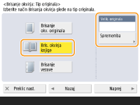 Če se velikost, prikazana v <Velik. originala>, razlikuje od velikosti knjige, pritisnite <Sprem.>, da izberete velikost. Optično lahko preberete samo velikosti izvirnikov, ki so prikazane na zaslonu na dotik.