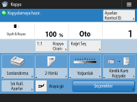 Ekran görünümüyle ilgili ayarları değiştirebilirsiniz. Örneğin, makineyi açık duruma getirmenizin hemen ardından hangi ekranın görüneceğini, alan kağıt ve toner için mesaj görünüp görünmeyeceğini seçebilirsiniz. <Görüntüleme Ayarları>
