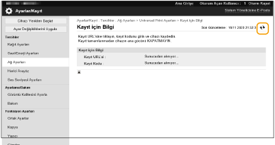 Kayıt işlemi tamamlandıktan sonra, [Registered] öğesi [Registration Status] bölümünde görünür.
