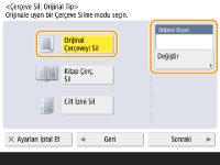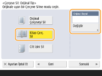 <Orijinal Boyut> bölümünde gösterilen boyut kitabın boyutundan farklıysa, boyutu seçmek için <Değiştir> seçeneğine basın. Yalnızca dokunmatik panel ekranda gösterilen orijinal boyutları taranabilir.