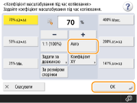 Якщо встановити значення <Авто>, формат паперу необхідно вибрати вручну. Якщо не встановити формат паперу, коефіцієнт масштабування під час копіювання автоматично встановлюється відповідно до формату паперу, завантаженого в шухляду для паперу 1.