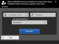 <Auto. berrabiarazteko denbora> ezarrita badago, erabiltzaileak automatikoki saioa amaitzen du eragiketarik ez denean burutzen epealdi jakin batean. <Auto. berrabiarazteko denbora>