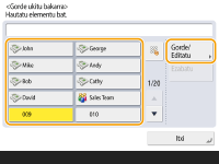 LDAP zerbitzaria dagoeneko erregistratu bada makinan (LDAP zerbitzaria erregistratzea), bilatu egin ditzakezu helmugak eta horiek erregistra ditzakezu ukipen-bakarreko botoietan. Sakatu <Helb./Birbid. ezarpenak>  <Gorde ukitu bakarra>  hautatu erregistratu nahi duzun ukipen-bakarreko botoia  sakatu <Gorde/Editatu>  <LDAP zerbitzaria> eta bilatu helmugak <Bilaketa-irizpideak> erabiliz. Helmugaren ezarpenak berretsi ostean, sakatu <Ukitu bakarraren izena>  idatzi bistaratu beharreko ukipen-bakarreko izena  sakatu <Ados>.