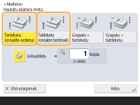 Elikagailuko bi kopia edo gehiago kopiatzerakoan, tartekatzeko edo taldekatzeko aukera duzu kopiak ordenatzeko. Hautatu "Tartekatu" orrialde-ordena jarraitzeko. Hautatu "Taldekatu" orrialde bakoitzeko sortak inprimatzeko, adibidez, lehen orrialdearen 10 orri, bigarren orrialdearen 10 orri, etab.