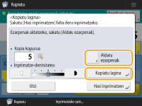 Sartu kopia kopurua eta kopiatze-ezarpenak zehaztu zure xedearen arabera. Oinarrizko kopiatze eragiketak
