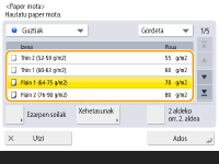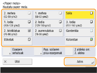 Hori ez den beste pantaila bistaratzen bada paper-tamaina eta mota zehaztekoMezua batek galdetzen badizu bistaratutako paper-gida doitzeko, doitu paper-gidaren zabalera berriz eta sakatu <Ados>.