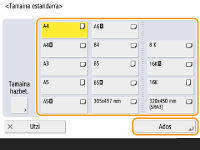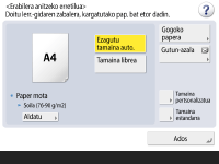 Hautatu paper-tamaina eta sakatu <Ados>.