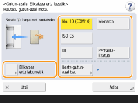 Pertsonalizatutako gutun-azal tamaina erregistratzeko, sakatu <Pertsonalizatua>